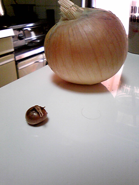 とりあえず、あのタマネギを切ってみようと思います。食べれるのかな……